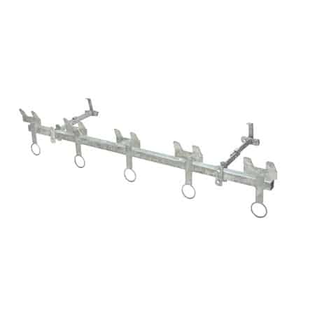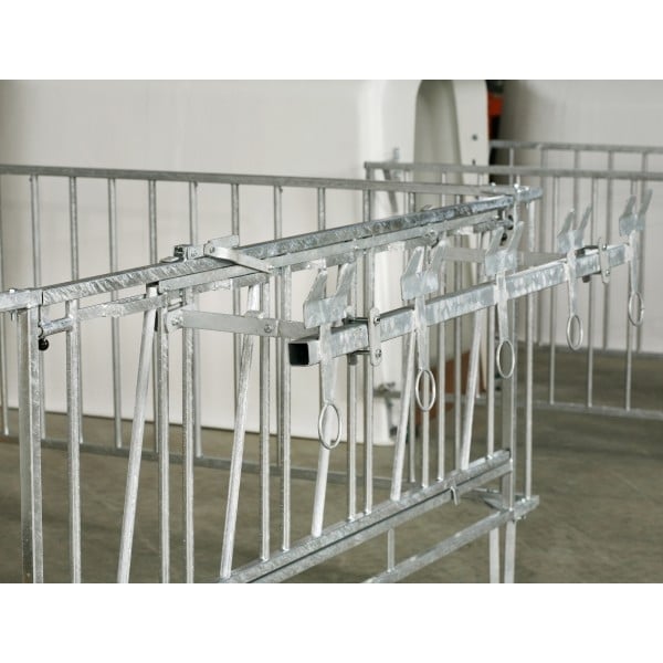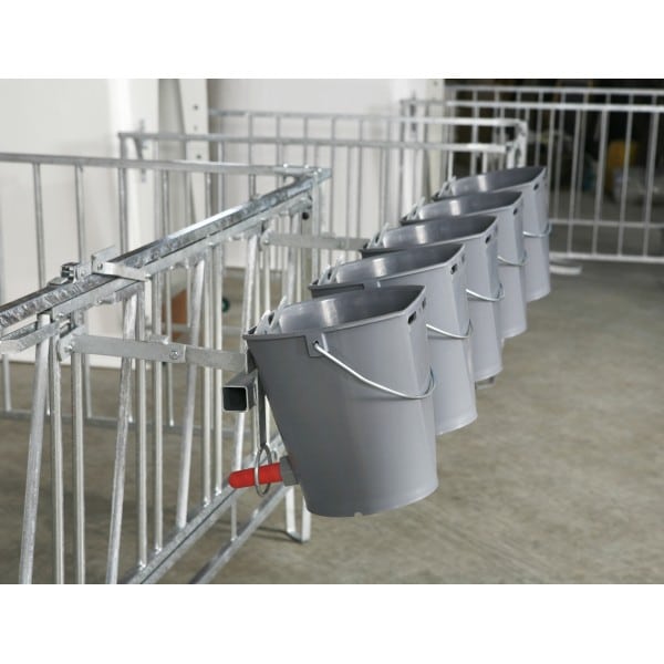 Verzinkter Nuckeleimerhalter zur Montage an der Vorderseite der Kälberhütte. Klappbar. Kapazität für 5 Nuckeleimer