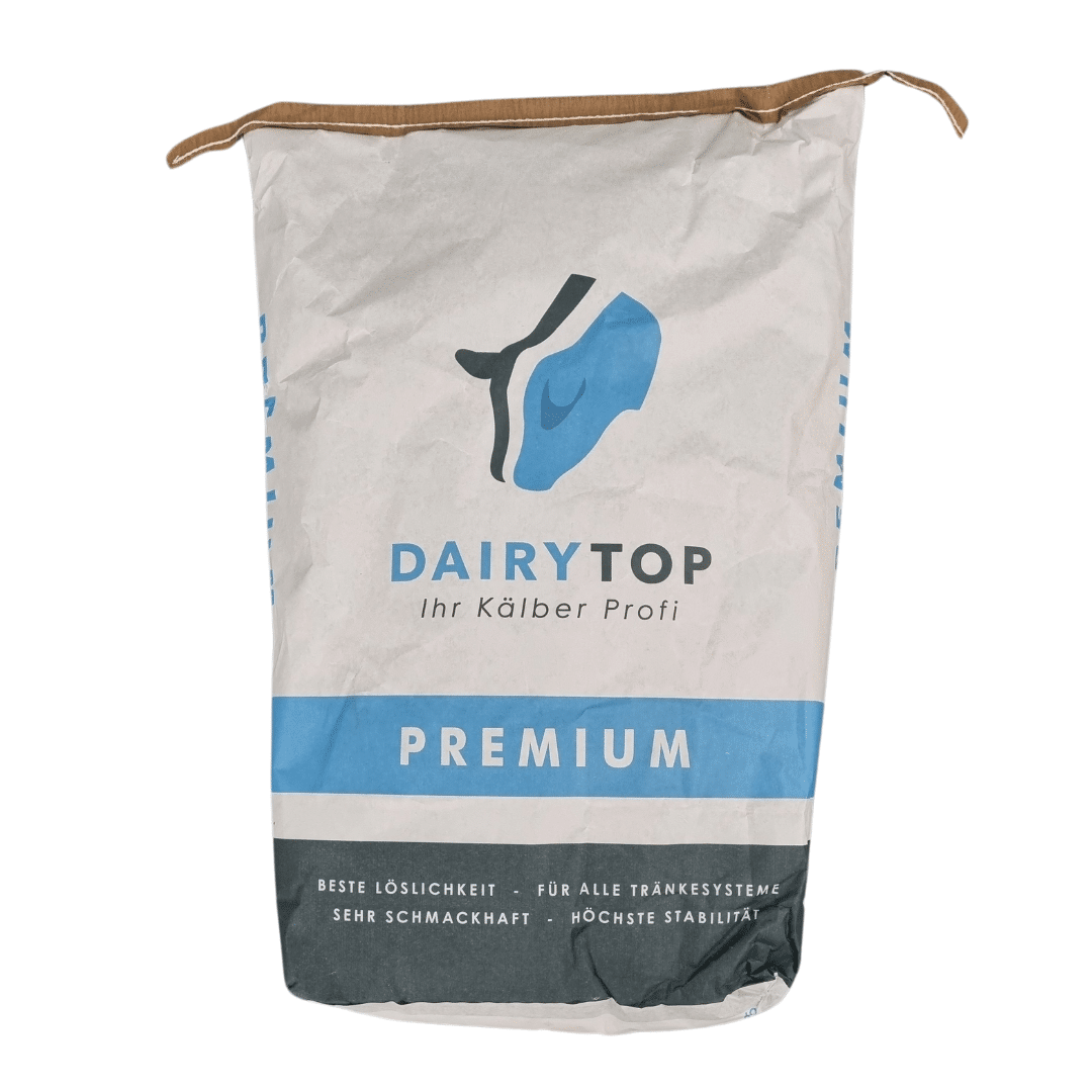 DairyTop Premium is ons hoogwaardigste op weipoeder gebaseerde melkpoeder. De Premium is een aangezuurd product. Door het zeer hoge gehalte aan kokosolie is de Premium al vanaf 20gr Celcius oplosbaar en zeer licht verteerbaar. De hoogwaardige organische zuren in combinatie met de zeer zorgvuldig geselecteerde zuivelgrondstoffen maakt de Premium tot een zeer smakelijke en goed verteerbare kunstmelk. Daarbij blijft de kunstmelk tot twintig uur stabiel in oplossing en daarom zeer geschikt voor voorraad voedering. Tevens is de Premium uitermate geschikt voor het gebruik in drinkautomaten.